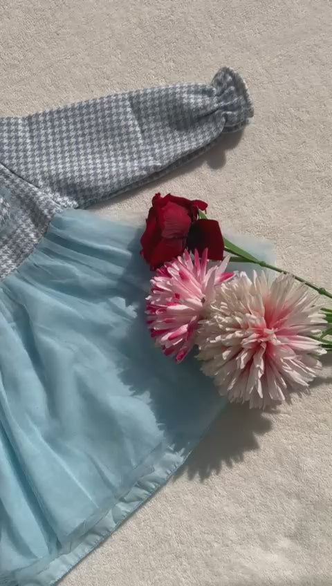 Blue & White Check Frock for Girls β pre winter