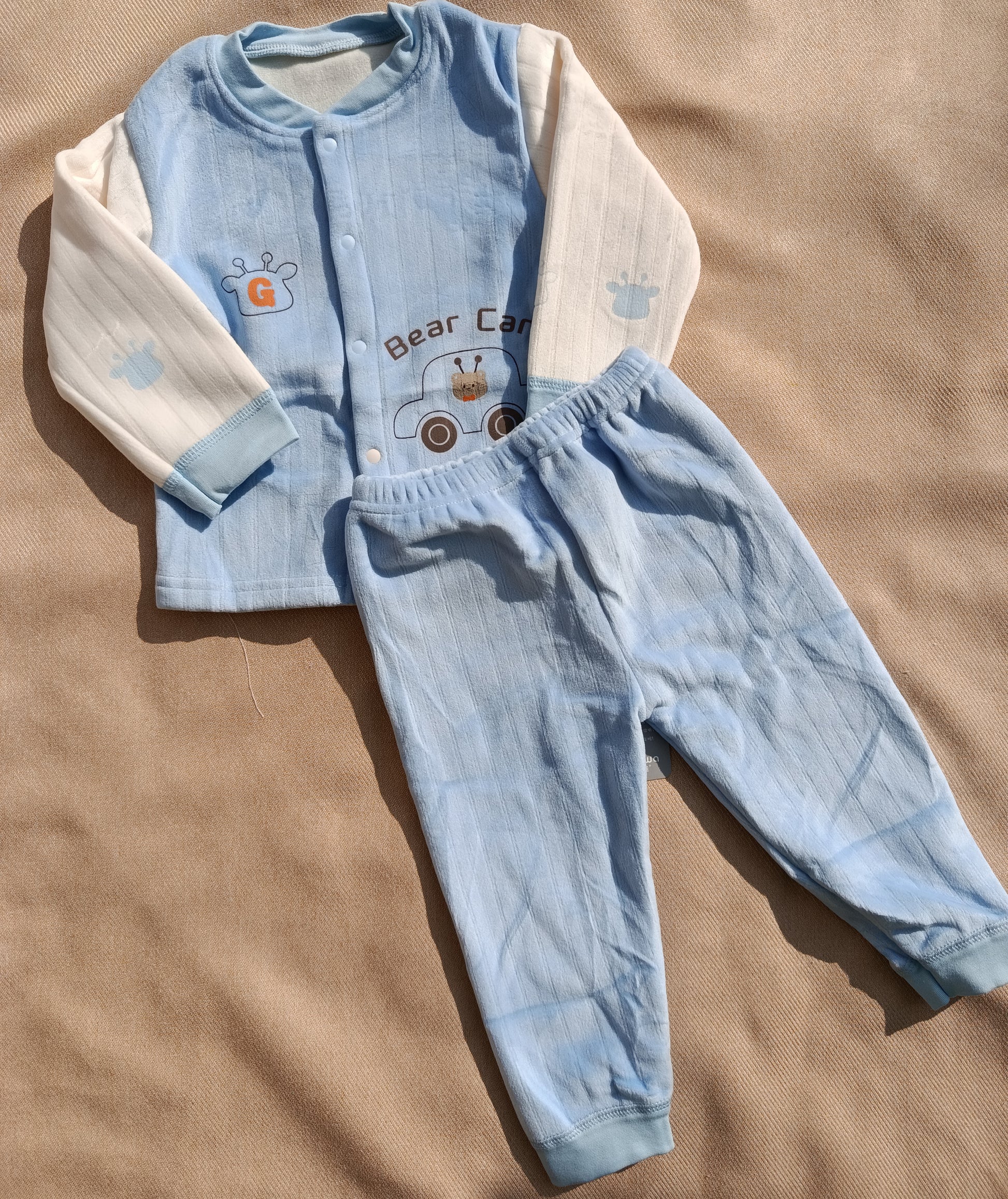 Blue Bear Car – 2 Pcs Winter Set (Trouser & Shirt, Inner Blanket Fleece)